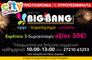 3 τυχεροί ακροατές θα κερδίσουν ισάριθμες δωροεπιταγές αξίας 30 ευρώ για πυροτεχνήματα!