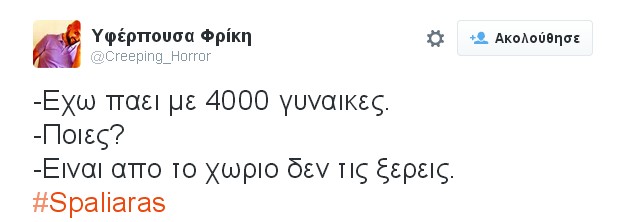 Ο Σπαλιάρας αποκάλυψε με πόσες γυναίκες γυναίκες έχει κάνει σεξ. Το νούμερο 4000 είναι ομολογουμένως εντυπωσιακό και οι χρήστες του twitter δεν θα μπορούσε να μην αντιδράσουν με ξεκαρδιστικά σχόλια και φωτογραφίες.