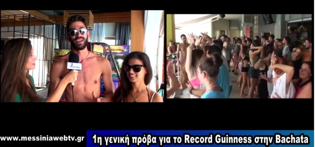 Tην Κυριακή 26 Ιουλίου στην πισίνα του Elite City Resort πραγματοποίηθηκε η 1η Γενική πρόβα για την προσπάθεια της Καλαμάτας να σπάσει το record Guinness στην Bachata! Η οικογένεια του χορού ένωσε τις δυνάμεις της για το καλύτερο αποτέλεσμα!