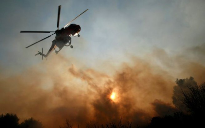 Για την κατάσβεση της φωτιάς, από το πρωί, επιχειρούν τρία ελικόπτερα, ένα αεροπλάνο τύπου Πετζετέλ καθώς το δεύτερο που εδρεύει στη Μυτιλήνη καθηλώθηκε στο έδαφος λόγω βλάβης, και τέσσερα αεροπλάνα τύπου καναντέρ από την Αθήνα και τη Θεσσαλονίκη. Επίσης, χερσαίες δυνάμεις της Πυροσβεστικής από τη Μυτιλήνη, τη Χίο, την Αθήνα και τη Θεσσαλονίκη και πάρα πολλοί εθελοντές.