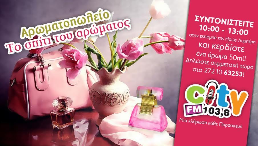 Το αγαπημένο μας αρωματοπωλείο ¨Το Σπίτι του Αρώματος¨, κάθε Παρασκευή χαρίζει σε έναν τυχερό ακροατή του City 103,8 ένα υπέροχο άρωμα!