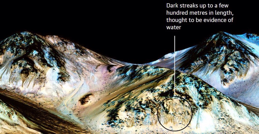 Οι αστροφυσικοί υπέθεταν εδώ και καιρό ότι οι γραμμές που εμφανίζονται κατά τους θερινούς μήνες στον Άρη, μπορεί να σχηματίζονται από τη ροή αλμυρού νερού. Οι γραμμές, που μπορεί να έχουν μήκος εκατοντάδες μέτρα και πλάτος περίπου 5 μέτρα εμφανίζονται κατά τη “θερμή” εποχή του πλανήτη και εξαφανίζονται όταν πέφτει η θερμοκρασία.