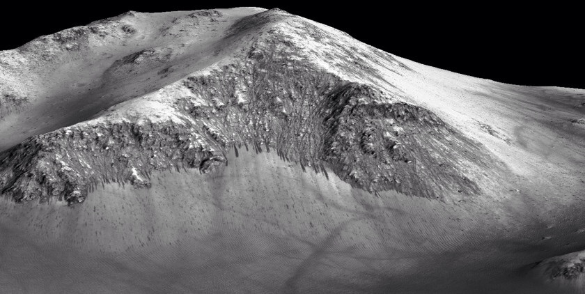 Φωτογραφία που δείχνει τις ραβδώσεις από τη ροή του νερού σε πλαγιά του πλανήτη
