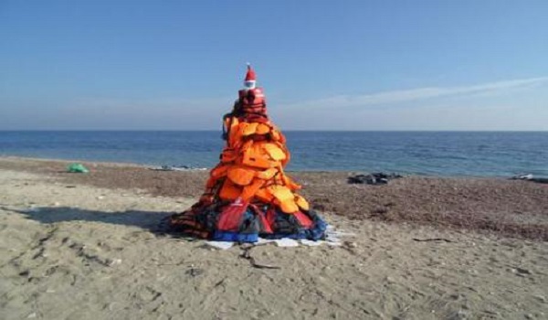 Για αυτό και ένα από τα χριστουγεννιάτικα δέντρα που στήθηκαν δεν ήταν σαν τα άλλα. Αλλά από τα πορτοκαλί σωσίβια των προσφύγων και των μεταναστών, που έχουν γίνει το σήμα κατατεθέν της σύγχρονης προσφυγιάς, καθώς τα φορούν οι εκατοντάδες χιλιάδες άνθρωποι που φτάνουν στις ακτές της Λέσβου με τις πλαστικές βάρκες.