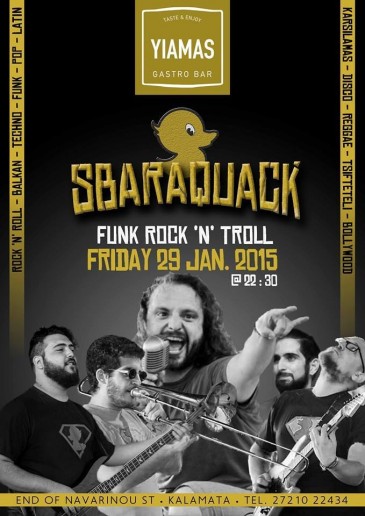 Οι Sbaraquack για 1η φορά στην Καλαμάτα την Παρασκευή 29 Ιανουαρίου στο Yiamas Gastro Bar!