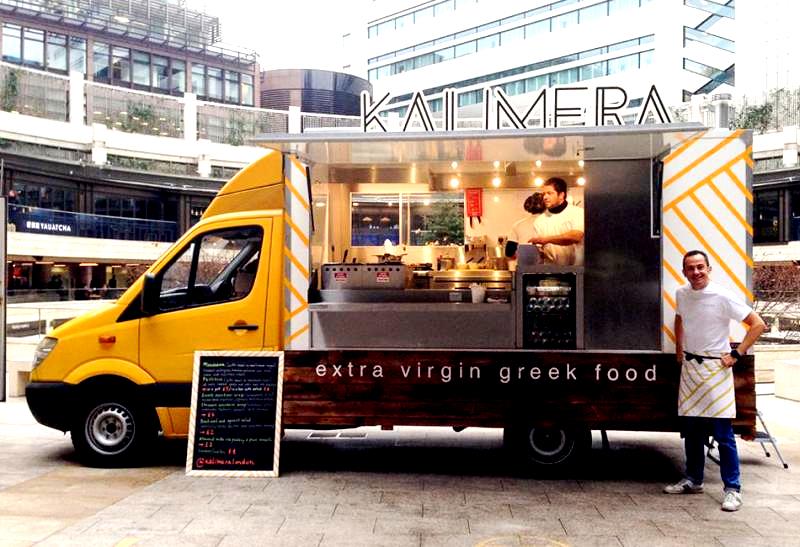 Μία ελληνική καντίνα στο City του Λονδίνου… Στο σημείο όπου χτυπάει η καρδιά της παγκόσμιας οικονομίας. Δεν πουλάει «βρώμικο» αλλά μουσακά, παστίτσιο, σουβλάκι, με αβοκάντο τζατζίκι ή μελιτζανοσαλάτα, σαλάτα με σπανάκι και παντζάρια, ρυζόγαλο και σπιτική κομπόστα. Το όνομά της «Καλημέρα» και ανήκει στον Έλληνα Τηλέμαχο Αργυρίου ο οποίος μέχρι πριν λίγο καιρό εργαζόταν ως τραπεζικό στέλεχος στο Σίτι. Στα τέλη Νοεμβρίου όμως αποφάσισε να κάνεις τροφή 180 μοιρών στην καριέρα του μετά από 16 χρόνια καριέρας στον τραπεζικό κλάδο.