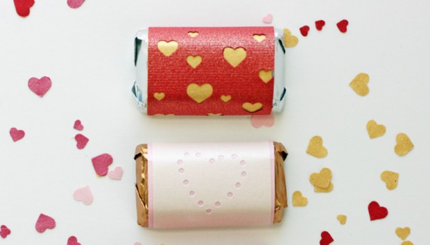 Αυτοσχέδια περιτυλίγματα για σοκολάτες ή σοκολατάκια Πάρτε αλουμινόχαρτο, σοκολατάκια και χαρτόνια σε διάφορα χρώματα για να φτιάξετε αυτό το εκπληκτικό δώρο. Τυλίξτε κάθε σοκολατάκι ή σοκολάτα με αλουμινόχαρτο και από πάνω τυλίξτε ένα κομμάτι χαρτόνι απλό ή γκοφρέ, πάνω στο οποίο θα έχετε σχεδιάσει και κόψει μικρές καρδούλες. Κολλήστε με λίγη κόλλα το χαρτόνι στο πίσω μέρος της σοκολάτας. Βάλτε τα σοκολατάκια ή τις σοκολάτες σας σε ένα πουγκάκι πάνω στο οποίο μπορείτε να σχεδιάσετε μερικές καρδιές ή τα αρχικά σας.