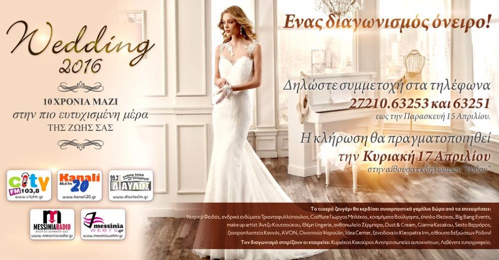 Αν σχεδιάζετε να παντρευτείτε μέσα στο 2016, και ο γάμος σας θα γίνει στη Μεσσηνία, τότε δηλώστε οπωσδήποτε συμμετοχή!