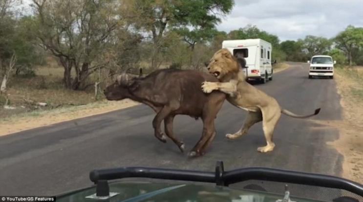 Οι επισκέπτες του Εθνικού πάρκου Κρούγκερ στη Νότια Αφρική απολάμβαναν το σαφάρι τους μέσα στο τζίπ τους. Ο οδηγός τους εξηγούσε διάφορα πράγματα για τη ζωή των άγριων ζώων. Ξαφνικά το τζιπ «κοκαλώνει». Στα δεξιά τους σε απόσταση αναπνοής, δυο βουβάλια μάχονται για τη ζωή τους.