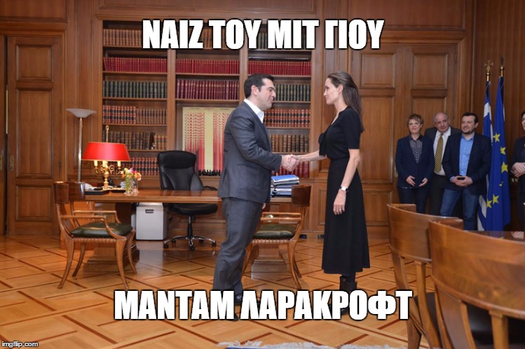 Είναι προφανές πως η συνάντηση του πρωθυπουργού μας Αλέξη Τσίπρα με την Αντζελίνα θα ήταν η ιδανική ευκαιρία για να ξεσαλώσουν οι πάντες στα social media. Μαζέψαμε πρόχειρα τα καλύτερα, δικά μας και αλλωνών (μας συγχωρείτε αλλά χάσαμε τις πηγές) και σας τα σπρώχνουμε: