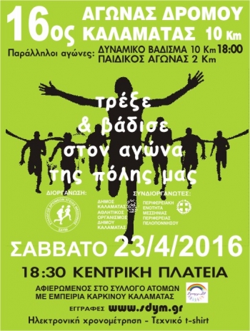 ΔΙΟΡΓΑΝΩΝΕΙ ΤΟΝ 16ο ΑΓΩΝΑ ΔΡΟΜΟΥ ΚΑΛΑΜΑΤΑΣ 10 km