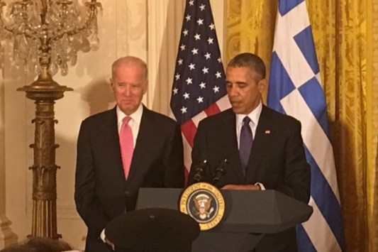 Αφού είπε στα ελληνικά “Λευκός Οίκος” και πήρε την… επιβεβαίωση του αντιπροέδρου του, ο Μπαράκ Ομπάμα είπε πως ο Τζο Μπάιντεν πιστεύει πως έχει… ελληνικό αίμα, προκαλώντας τα γέλια όσων βρέθηκαν στην εκδήλωση του Λευκού Οίκου, ανάμεσά τους ο υφυπουργός Τουρισμού Αλέξης Χαρίτσης και ο περιφερειάρχης Στερεάς Ελλάδας Κώστας Μπακογιάννης. Αποκάλυψε δε ότι η σύζυγός του Μισέλ έχει πάντα γεμάτο το ψυγείο τους με… ελληνικά γιαούρτια!