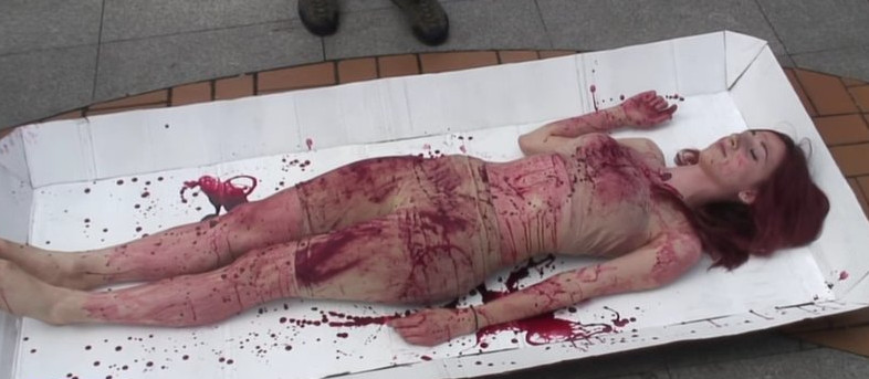αίμα βάφτηκαν βίντεο Γδύθηκαν διαδήλωση εικόνες ιδιαίτερη κατά κρεατοφαγίας