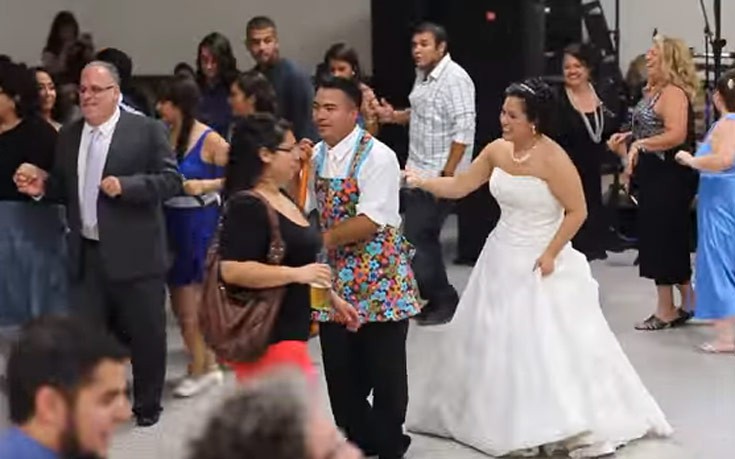 Έχοντας συνηθίσει στους γάμους να βλέπουμε έναν ρομαντικό χορό ανάμεσα στους νεόνυμφους, αυτό το ζευγάρι ξεχωρίζει με το χιούμορ του καθώς πήγε ένα βήμα παραπέρα. «Αγκάλιασαν» τις ρίζες τους από το Μεξικό και κράτησαν τις παραδόσεις με τη νύφη να παίρνει τη ζώνη στα χέρια και τον γαμπρό να βάζει την ποδιά….