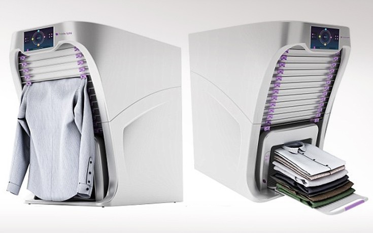 Η συσκευή διαθέτει έναν ιμάντα, πολλά ρομποτικά χέρια και ένα κινούμενο ράφι που βγάζει τα τέλεια διπλωμένα ρούχα μέσα σε λιγότερο από ένα λεπτό.