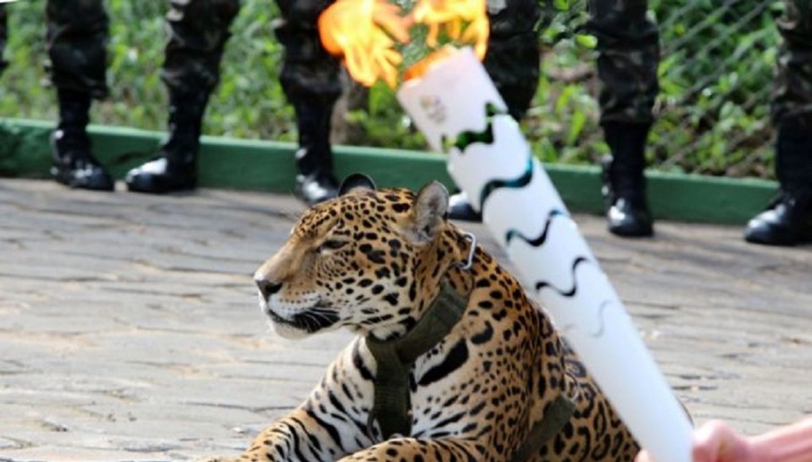 ‘Ενα χαμογελαστό, κατά τραγική ειρωνεία, τζάγκουαρ, παραμένει ως μασκότ της ολυμπιακής ομάδας της οικοδέσποινας Βραζιλίας.