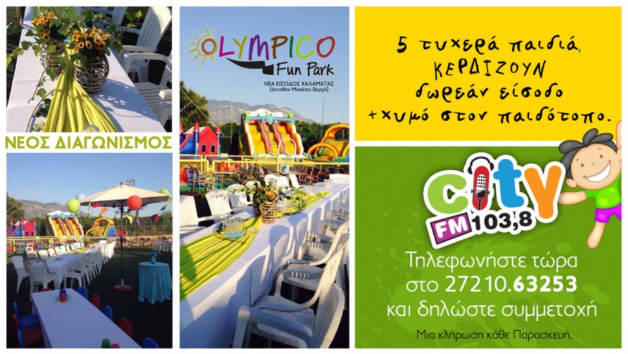 Πέντε παιδάκια, στην κλήρωση της Παρασκευής 22 Ιουλίου, θα κερδίσουν δωρεάν είσοδο στο Olympico Fun Park!