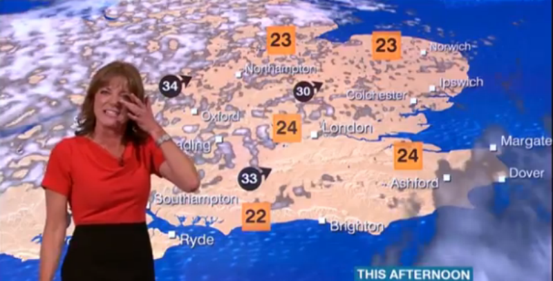 Η παρουσιάστρια του καιρού στο BBC, Louise Lear κάτι έβρισκε πάρα πολύ αστείο και ξεκαρδιστικό καθώς προσπαθούσε να παρουσιάσει τον καιρό την Τετάρτη το απόγευμα.