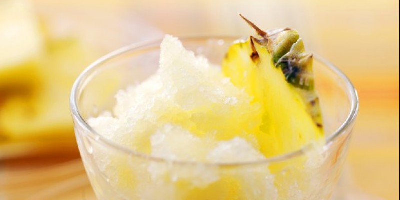 Κόβουμε τον ανανά σε κυβάκια και τον ρίχνουμε στο μπλέντερ. Χτυπάμε για λίγα δευτερόλεπτα.