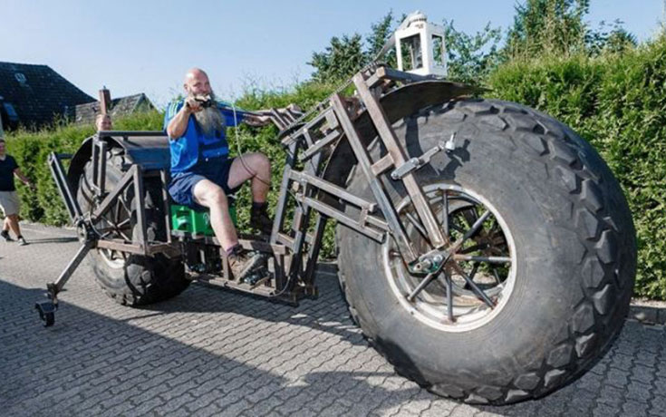Ο Frank Dose από το Schleswig-Holstein της Γερμανίας αφιέρωσε περίπου 6 μήνες δουλεύοντας για την κατασκευή της βαρύτερης μοτοσυκλέτας στον κόσμο. Το έργο αυτό του κόστισε 4.200 ευρώ και παρά το γεγονός πως το βάρος της μοτοσυκλέτας ξεπερνάει τον 1 τόνο, ο ίδιος λέει πως είναι απρόσμενα εύκολη στην οδήγηση.