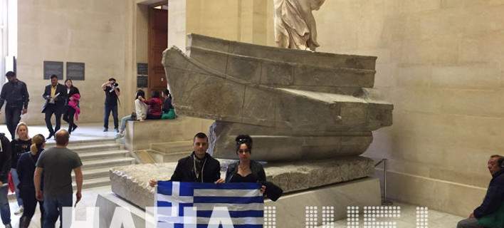 Σηκώνοντας την ελληνική σημαία μέσα στο Βρετανικό Μουσείο και τον Λούβρο αποφάσισαν να διαμαρτυρηθούν δύο Έλληνες φοιτητές, δείχνοντας έτσι την ευαισθητοποίησή τους στο θέμα της διεκδίκησης της εθνικής πολιτιστικής μας κληρονομιάς.
