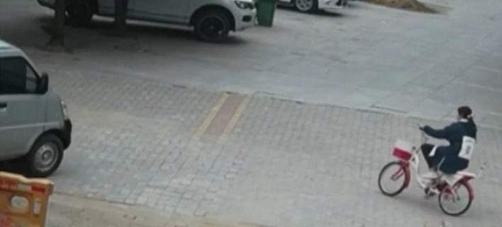 Η νεαρή γυναίκα έστριψε με το ποδήλατό της σ’ έναν δρόμο της πόλης Μποζχού στην ανατολική Κίνα, όταν εμφανίστηκε ξαφνικά μπροστά της ένα ημιφορτηγό και την παρέσυρε για μερικά μέτρα, προτού σταματήσει.