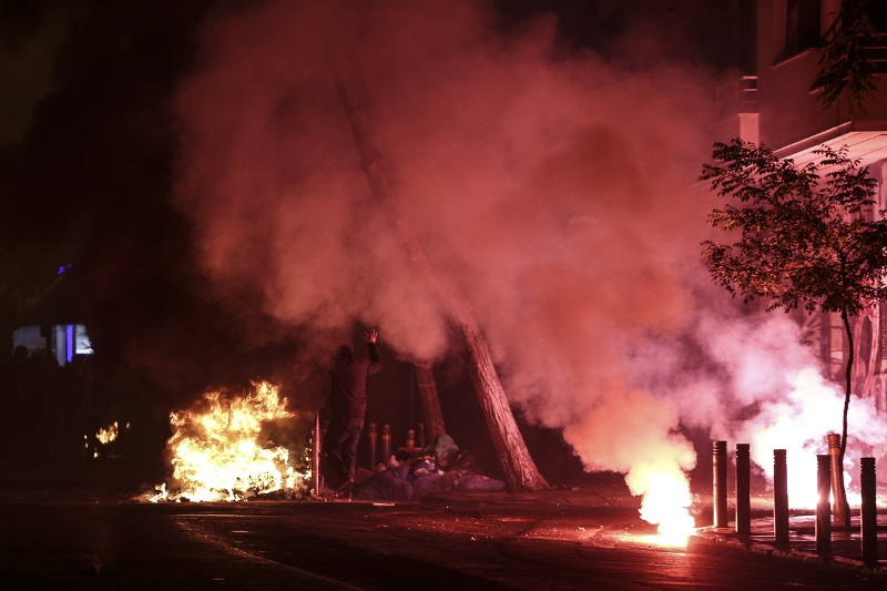 Σκηνικό πολέμου, έστησαν οι αντιεξουσιαστές και στο Βόλο, μετατρέποντας το κέντρο της πόλης σε πεδίο μάχης.