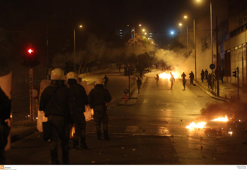 Τα επεισόδια ξεκίνησαν λίγο μετά τις 7 και ενώ βρισκόταν σε εξέλιξη η πορεία μνήμης για την επέτειο της δολοφονίας του ανήλικου Αλέξανδρου Γρηγορόπουλου πριν οκτώ χρόνια στα Εξάρχεια, από τα πυρά του αστυνομικού Επαμεινώνδα Κορκονέα.