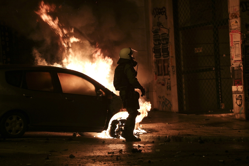 Οι άνδρες των ΜΑΤ και οι αστυνομικοί, 3.000 είχαν αναπτυχθεί χθες στο κέντρο υπό το φόβο των επεισοδίων, παρέμειναν για μια ακόμη φορά θεατές στο ίδιο έργο. Οι εντολές που είχαν πάρει οι αστυνομικοί από την ηγεσία του υπουργείου Προστασία του Πολίτη ήταν α οριοθετήσουν τα επεισόδια και να ακολουθηθεί το δόγμα «αφήστε να κάψουν στα Εξάρχεια». Και όντως, στους κεντρικότερους δρόμους της πρωτεύουσας δεν συνέβη το παραμικρό αφού οι άνδρες των ΜΑΤ ακολουθούσαν σε απόσταση αναπνοής τους αναρχικούς, ωστόσο, ομάδες που δεν μετείχαν στην πορεία, λίγο πριν αυτή τελειώσει, εμφανίστηκαν στους δρόμους των Εξαρχείων και άρχισαν τις εχθρικές συγκρούσεις με τους αστυνομικούς.