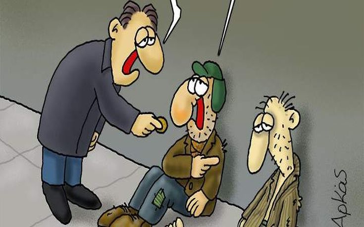 Ο φτωχός δείχνει τον διπλανό του και ρωτάει: «Αυτός;» με τον κύριο να του λέει: «αυτός αποκλείεται να επιβιώσει μέχρι τις εκλογές».