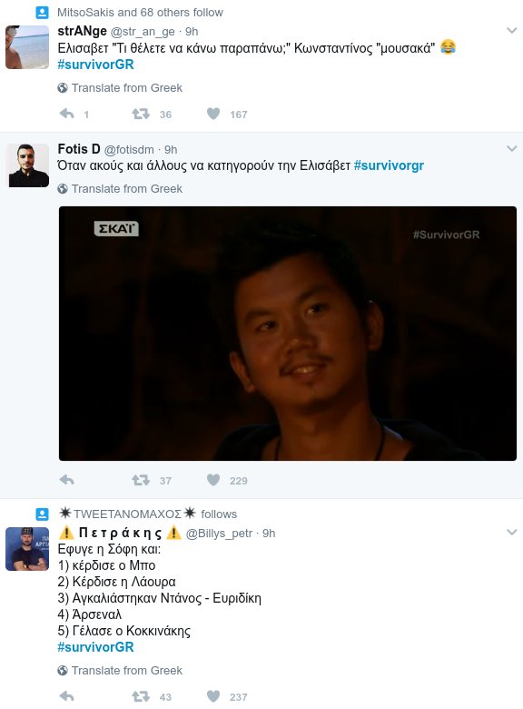 Χιούμορ αλλά και καυστικά σχόλια απογείωσαν το survivor μέσω του twitter για μια ακόμη φορά το βράδυ της Δευτέρας.