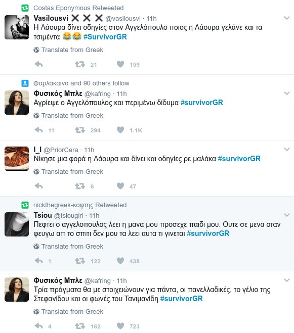 Οι νίκες του Μπο, της Λάουρα, του Κοκκινάκη και της Ελισάβετ σε συνδυασμό με τη συμφιλίωση της Ευριδίκης Βαλαβάνη με τον Γιώργο Αγγελόπουλο, αποτέλεσαν τη βάση όσων ασχολήθηκαν με το twitter το βράδυ της Δευτέρας.