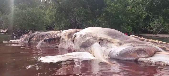 Ένα τεράστιο σάπιο κουφάρι ζώου (πιθανότατα φάλαινας) ξεβράστηκε στις ακτές της Ινδονησίας, κάνοντας τους ντόπιους να αναρωτιούνται περί τίνος πρόκειται.