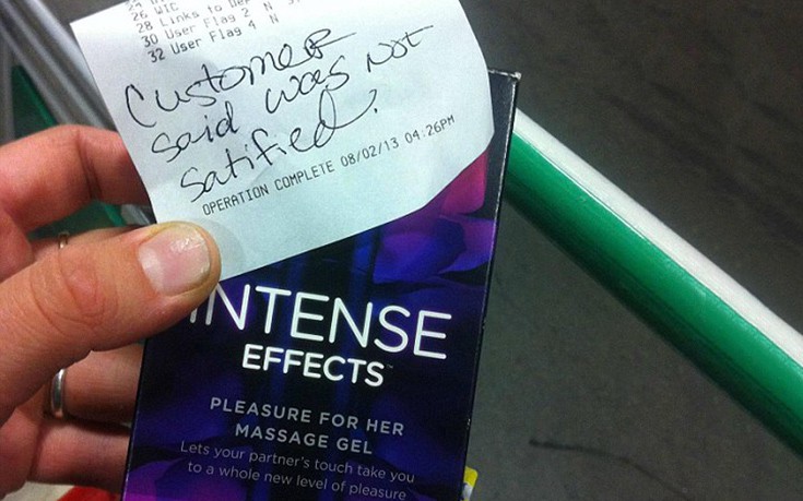 Εικόνες που δημοσιεύονται στα κοινωνικά δίκτυα αποκαλύπτουν κι άλλους λόγους όπως ενός πελάτη που επέστρεψε ένα λάδι για απολαυστικό μασάζ επειδή δεν το απόλαυσε ή ενός άλλου παιχνιδιού που έγραφε ότι σταματάει μόνο του ανά 30 λεπτά.