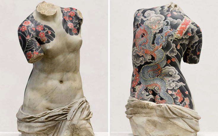 Ένας Ιταλός καλλιτέχνης με το όνομα Fabio Viale αποφάσισε να ταιριάξει το παλιό με το καινούριο χρησιμοποιώντας τις εικόνες διάσημων γλυπτών όπως η Αφροδίτη της Μήλου ως καμβά. Αυτά τα αντίγραφα, ο καλλιτέχνης τα διακόσμησε με ρεαλιστικά τατουάζ εμπνευσμένα από διάφορα μοτίβα.