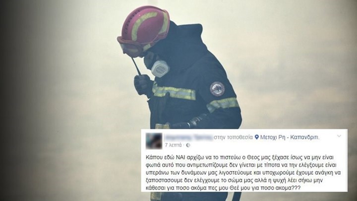 Ένας από τους πυροσβέστες που συμμετείχε στη μεγάλη επιχείρηση στο Μετόχι, συγκλόνισε με το μήνυμά του στο Facebook.