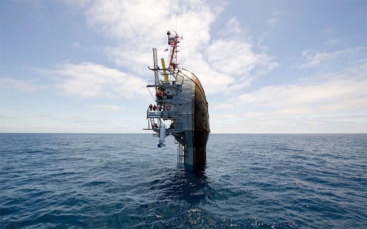 Όλα εκτός από το FLIP (Floating Instrument Platform), μια πλωτή πλατφόρμα έρευνας που μοιάζει με κράμα καραβιού και υποβρυχίου. Κι αυτό για να μπορεί να κάνει το μαγικό του, αυτό που κανένα άλλο καράβι δεν μπορεί χωρίς να βουλιάξει.