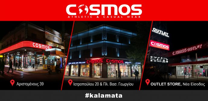 Σάββατο 26 Αυγούστου, δίνουμε ραντεβού στα τρία καταστήματα αθλητικών COSMOS Καλαμάτας!