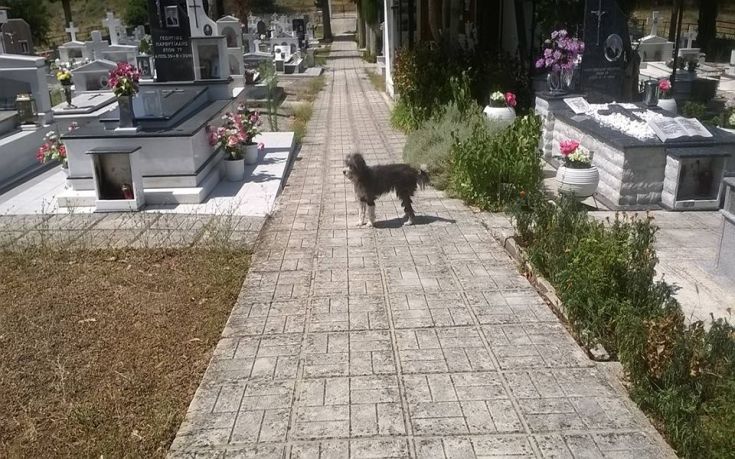 Η κ.Αλεξάνδρα, αφού ρώτησε, έμαθε πως ο συμπαθέστατος σκύλος έμενε στο νεκροταφείο απο τότε που πέθανε το αφεντικό του, περιμένοντας την μάταια να γυρίσει κοντά του.
