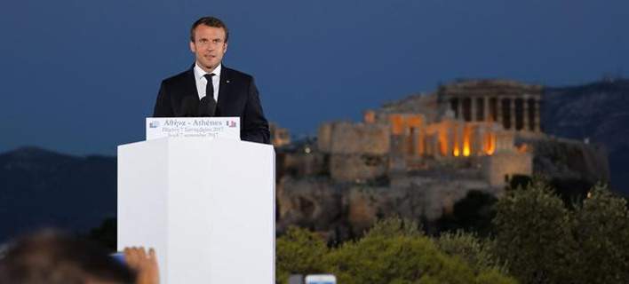Συγκίνησε τα γαλλικά ΜΜΕ η επιλογή του Μακρόν να εκφωνήσει το όραμά του για τη νέα Ευρώπη από τον επιβλητικό λόφο της Πνύκας, με φόντο την Ακρόπολη.