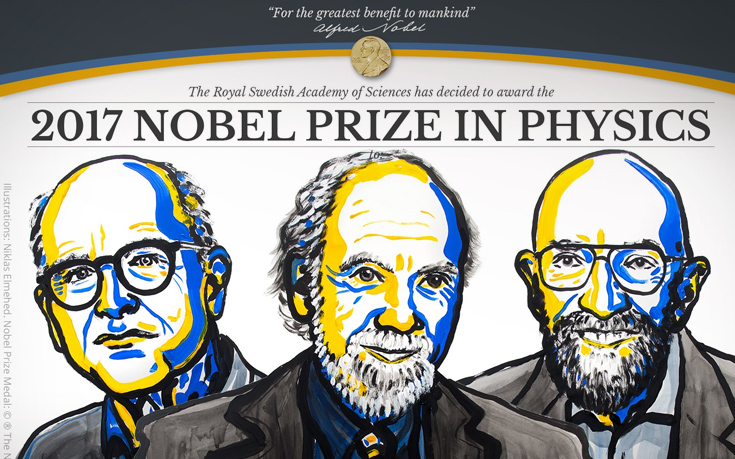 Στους επιστήμονες Rainer Weiss, Barry Barish και Kip Thorne απονεμήθηκε το βραβείο Νόμπελ Φυσικής για το 2017, για τη σημαντική συμβολή τους στη μελέτη των βαρυτικών κυμάτων, όπως ανακοίνωσε σήμερα η Σουηδική Ακαδημία Επιστημών.