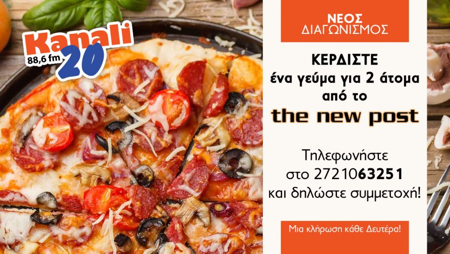 Συντονιστείτε κι εσείς στο Κανάλι 20 88,6 τηλεφωνήστε στο 2721063251 και μπείτε στην κλήρωση της επόμενης Δευτέρας!