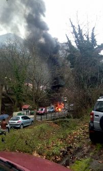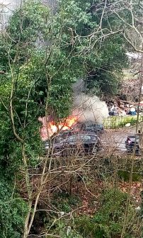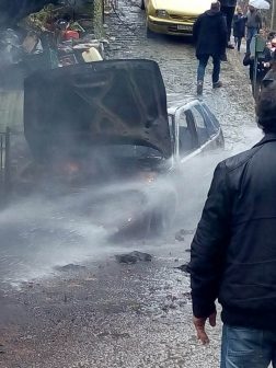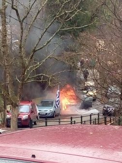 Για άγνωστους λόγους, το παρκαρισμένο όχημα άρχισε να βγάζει καπνούς από την μηχανή. Σύμφωνα με αυτόπτη μάρτυρα έσπευσαν να δουν τι συμβαίνει, άνοιξαν το καπό και τότε άρπαξε φωτιά.