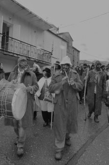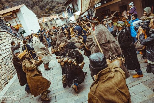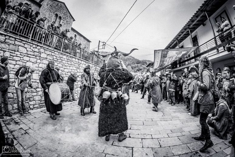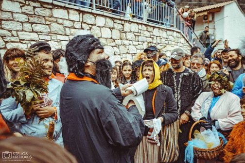 Το ομαδικό μουντζούρωμα από καπνιά φούρνου σαν αντιβασκανικό. Ο αγερμός, η επίσκεψη δηλαδή του “θιάσου” σε όλα τα σπίτια του χωριού κυκλικά, για ανταλλαγή ευχών και συλλογή εδεσμάτων που θα φαγωθούν σε ομαδικό γεύμα. Ο χορός των τράγων, όπου τραγόμορφοι επιδίδονται σε εικονικά παλέματα, ενώ τα κρεμασμένα κουδούνια τους ηχούν ασταμάτητα. Η αροτρίαση, η ιερότερη στιγμή της ημέρας όπου το παμπάλαιο αλέτρι θα “οργώσει” τρεις φορές την πλατεία του χωριού, ενώ ο “θίασος” θα σπέρνει σπόρους και θα τους θάβει. Ο γάμος, κανονικός στην πομπή, προκαλεί άφθονο γέλιο με το εντυπωσιακό τέλος όπου “γαμπρός και νύφη” ερωτεύονται κατάχαμα στο “τρεις φορές οργωμένο χώμα”. Για να θυμίσουμε την περιγραφή παρόμοιας πράξης από τον Ησίοδο 2.700 χρόνια πριν: