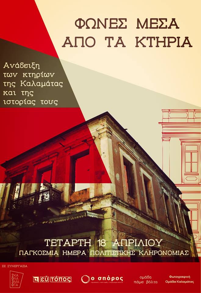 “Οι Φωνές μέσα από τα Κτήρια – Η Ιστορία των κτηρίων της Καλαμάτας» στόχο έχει την καταγραφή των κτηρίων της πόλης μας και τη διασύνδεσή τους με την κοινωνική, γραπτή και προφορική ιστορία, με στόχο την ανάδειξη, μελέτη και την προστασία τους.