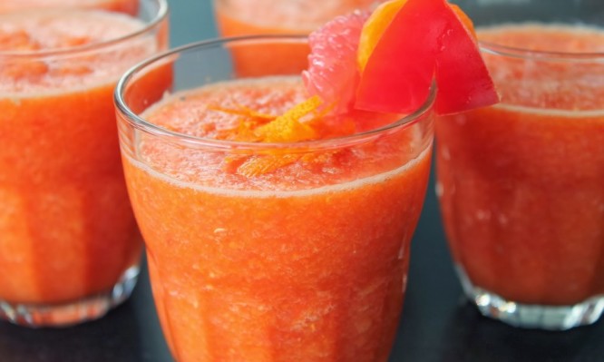 Κόψτε το γκρέιπφρουτ στο μισό, είναι προτιμότερο να είναι κρύο (από το ψυγείο) και αφαιρέστε την σάρκα του με ένα κουτάλι. Βάλτε το γκρέιπφρουτ και το μέλι σε ένα μπλέντερ και ανακατέψτε μέχρι το μείγμα να γίνει λείο.