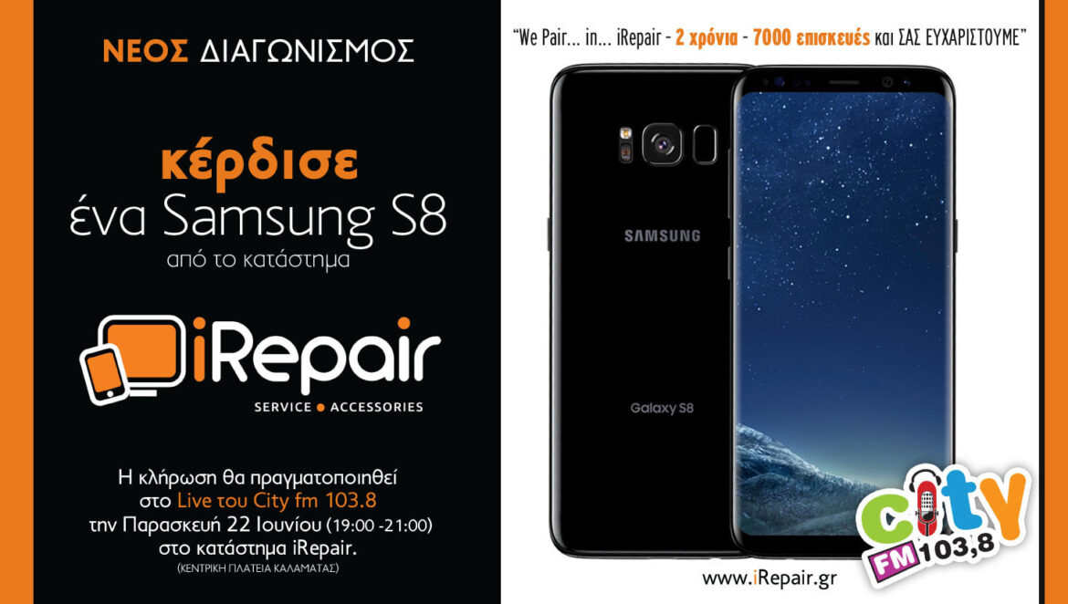 Η κλήρωση θα γίνει LIVE από το City FM 103,8 την Παρασκευή 22 Ιουνίου, 7 με 9 το απόγευμα στο iRepair που βρίσκεται στην Κεντρική πλατεία Καλαμάτας!