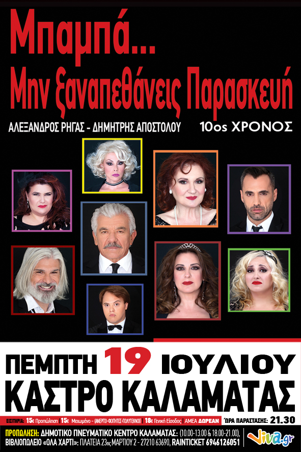 Στην Καλαμάτα θα παρουσιαστεί την Πέμπτη 19 Ιουλίου στο αμφιθέατρο του Κάστρου (09:30 μ.μ.)