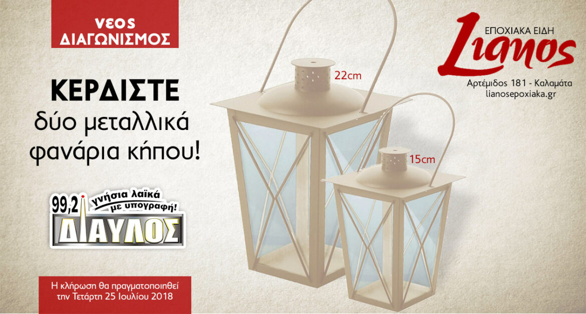 Και γι αυτό, φρόντισε ο Δίαυλος 99,2! Ένας τυχερός ακροατής θα κερδίσει 2 πανέμορφα φανάρια κήπου για να φωτίζουν και να στολίζουν τον κήπο ή τη βεράντα σας!