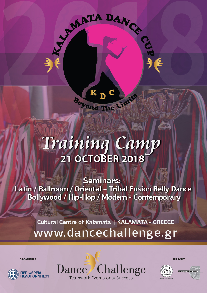 Στα πλαίσια του 1st Kalamata Dance Cup, θα πραγματοποιηθεί Training Camp (ομαδικά σεμινάρια χορού) σε Latin – Ballroom, Oriental – Bollywood Dance – Tribal Fusion Belly Dance, Contemporary, Hip–Hop, για όλες τις ηλικίες και όλα τα επίπεδα από τους διακεκριμένους καλεσμένους διεθνείς προπονητές χορού από Ελλάδα και εξωτερικό όπου μπορούν να τα παρακολουθήσουν όλοι, κάθε ηλικίας και χορευτικού επιπέδου. Πρώτη φορά στην Καλαμάτα όλοι μαζί τόσοι καταξιωμένοι χοροδιδάσκαλοι για να μας προσφέρουν την τεχνογνωσία τους!